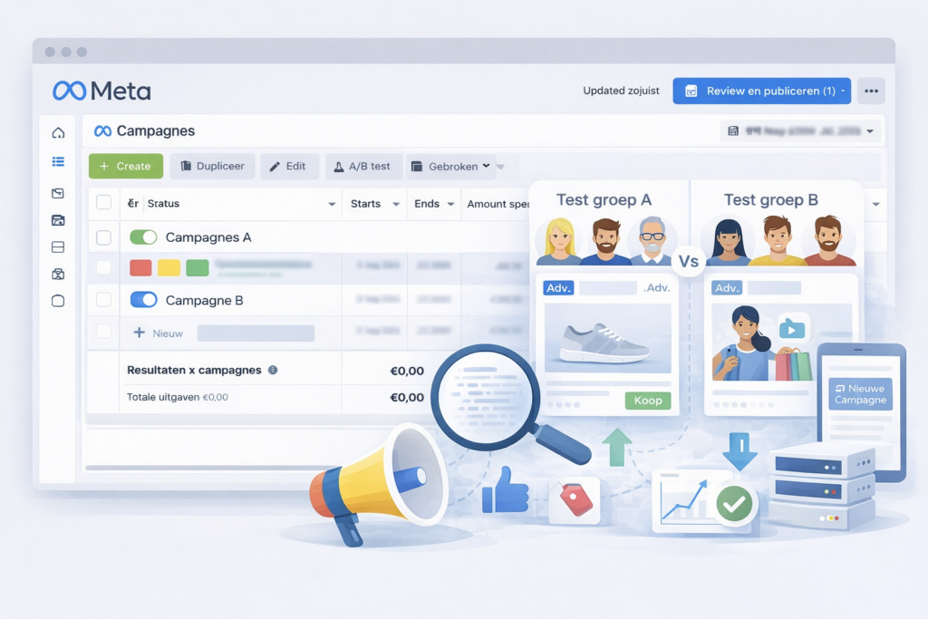 Ik zet campagnes op met een logische structuur (per doel/fase) en maak testvarianten met verschillende invalshoeken. Ik test creatives, doelgroepen en placements om snel te vinden wat het beste presteert.